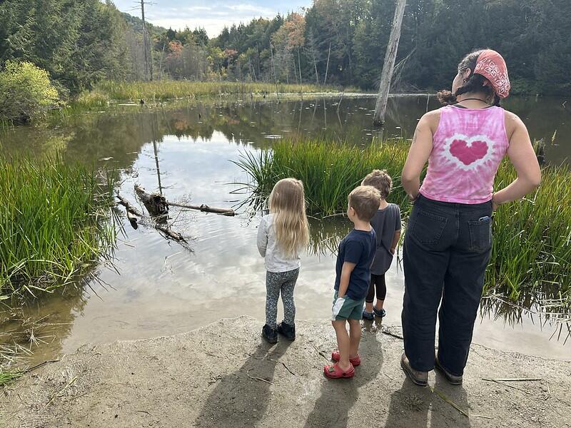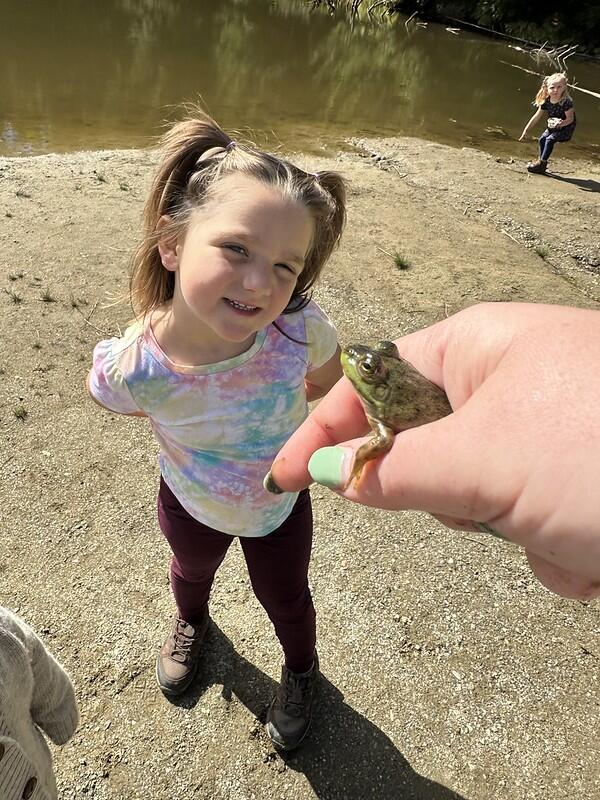 Wednesday’s groups nature moment was at the pond, a few of us were watching some frogs on a log and then suddenly one jumps up, gets a dragonfly in its mouth, and dives into the water. We then watched another frog try and get the dragonfly away from the other frog, but it wasn’t budging. The frog sat on the log with the dragonfly in its mouth the whole time. We wonder how long it would take to each?