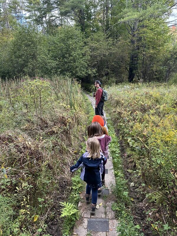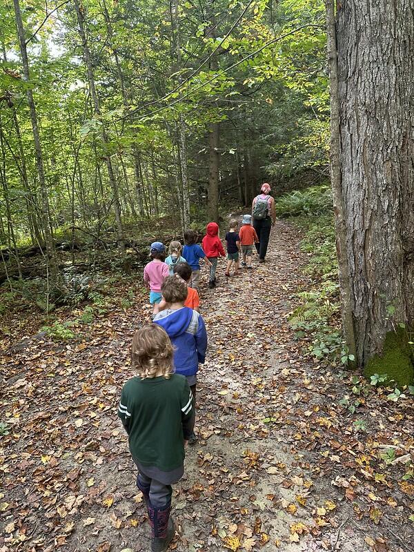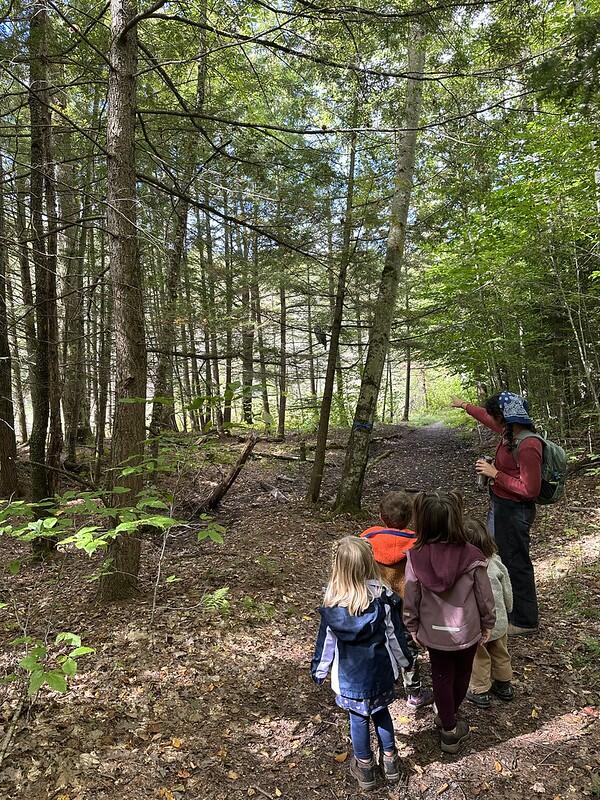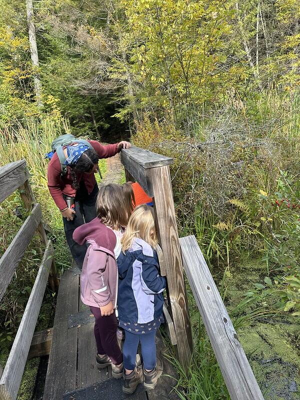 With Friday's group our nature moment was on the way down to the pond on a trail that walks along the pond we suddenly stopped! Naomi pointed up and right above us on a low branch of a Hemlock tree was a Barred Owl staring at us! It didn’t mind that we were there, but we did get to see it take flight and see if huge wings as it landed is a tree a little farther from us.