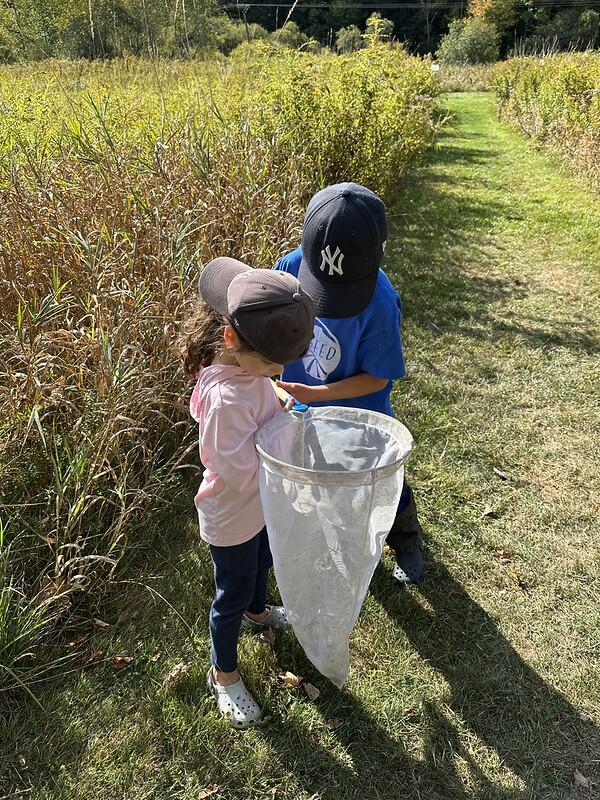 We planned another jam-packed day. After snack we got to run around playing some games in the field before heading up to Peeper Pond for another round of field sweeping. This time of our students brought a cool gadget that lets you enclose the insect safely and see it through a magnifying glass, it was helpful for getting the insects out of our nets and getting to see them up close too! We caught over 10 grasshoppers, a dragonfly, some crickets, spiders, and a few other creepy crawlers.