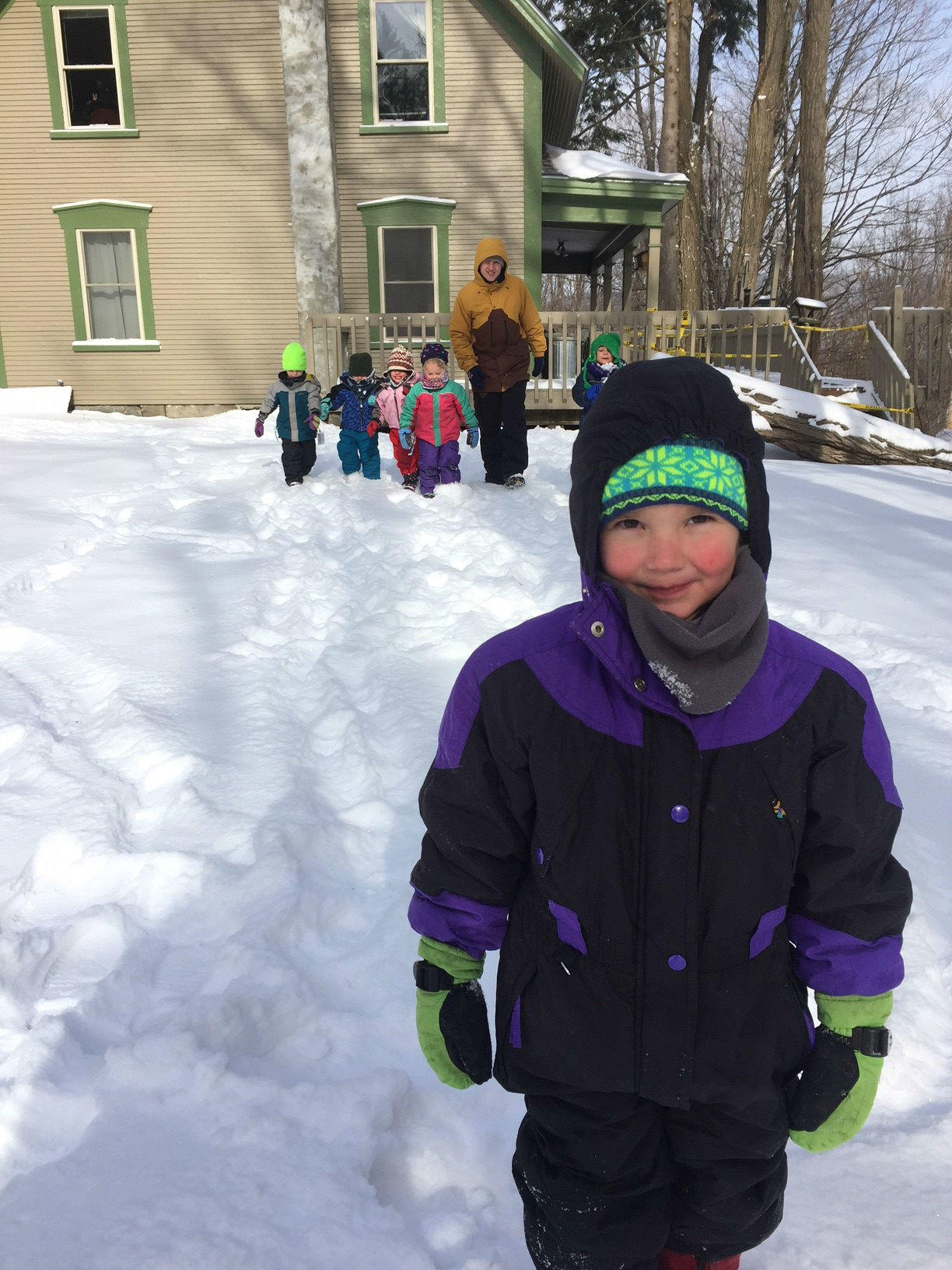 What an amazing day we had at Forest Playschool today. Waking up to a surprise couple of inches of snow made us excited to get out and play! Although the wind was brisk, we were still able to stay warm and enjoy all of the fresh snow!